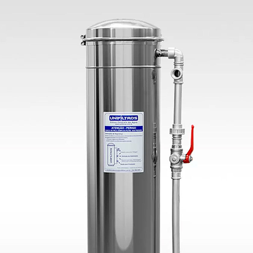 O Filtro Central de água da UniFiltros, além de aumentar a vida útil da rede hidráulica , proporciona higiene e praticidade, colocando água filtrada em todos os pontos de consumo.O Filtro Central da UniFiltros deve ser instalado junto da entrada de água para a residência. O Filtro central é construído em aço inoxidável de qualidade internacional – AISI 304 – polido, com tubulação em PVC de fácil manutenção pintada na cor prata.